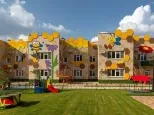 Во дворе строится школа,3 детских сада,есть действующая школа в соседнем дворе,подземные и многоуровневые парковки,,прогулочные аллеи с фонтанами,зоны отдыха и спортивные площадки.