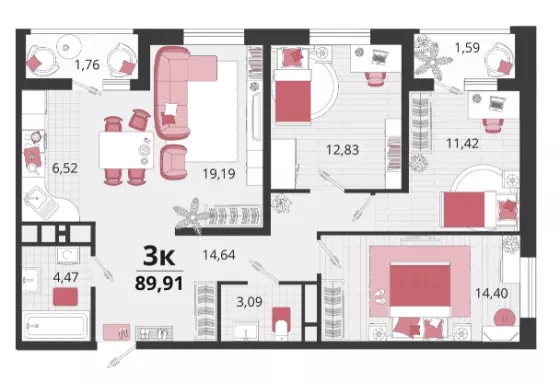 Продается 3-х комн. новостройка, 90 кв.м., 7/25 эт