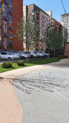 В подъездах дизайнерская отделка, видеонаблюдение, ландшафтный дизайн около дома, много парковочных мест.