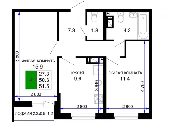 Продается 2-х комн. новостройка, 52 кв.м., 6/16 эт