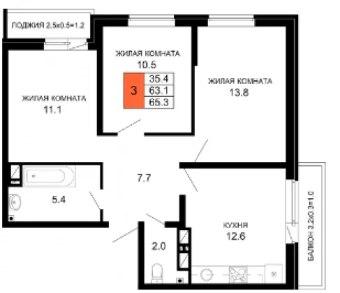 Продается 3-х комн. новостройка, 65 кв.м., 13/16 эт