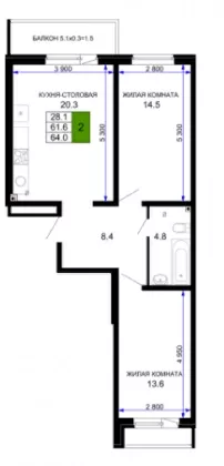 | Площадь, кв.м. | 65 |