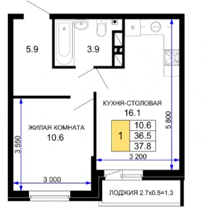 Просторная квартира,площадью 40м2,в предчистовой отделке.