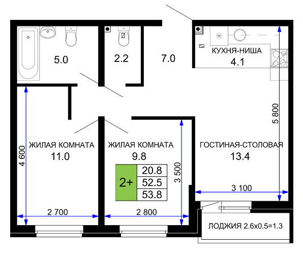 Квартира,площадью 55м2,в предчистовой отделке для большой семьи.