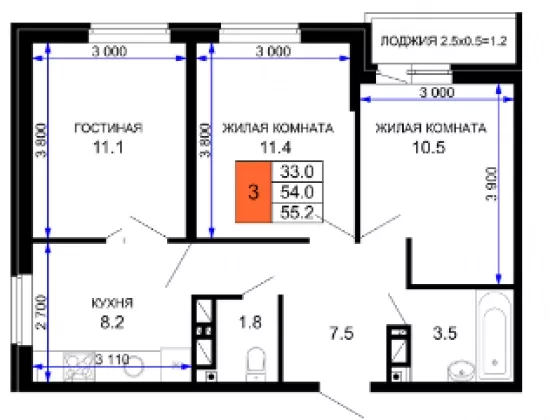 Продается 3-х комн. новостройка, 60 кв.м., 11/16 эт