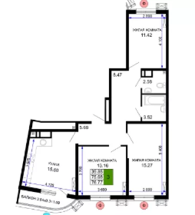 | Комнат в квартире | 3 |