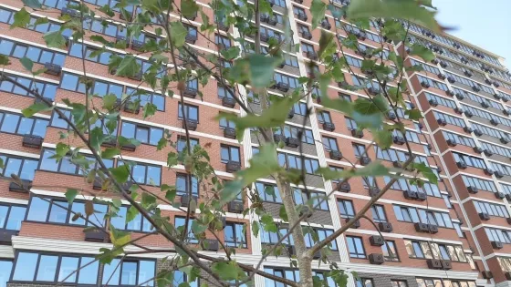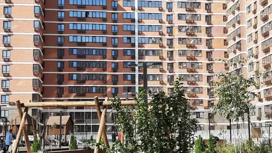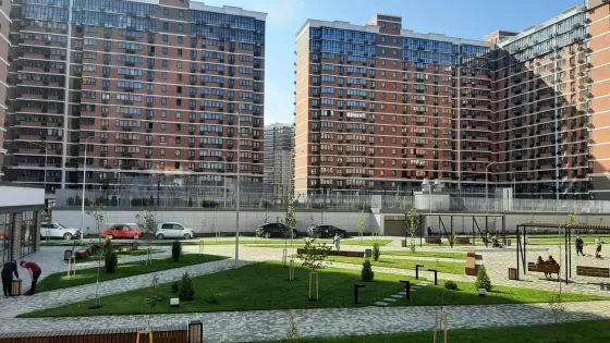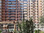 Придомовая территория со стилобатом,где первый этаж-это паркинг,второй- зона отдыха,детские площадки.
