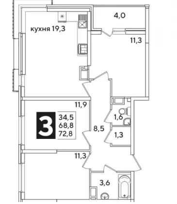 Продается 3-х комн. новостройка, 79 кв.м., 11/16 эт