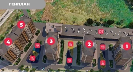 Квартал включает 5 десятиэтажных домов. На территории квартала оборудованы игровые зоны для детей разного возраста, беседки и зоны отдыха, площадки для активных игр, занятий спортом и наземная парковка.