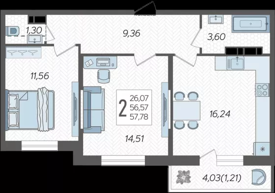 Продается 2-х комн. новостройка, 57.78 кв.м., 5/19 эт