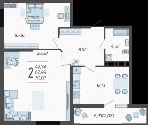 Продается 2-х комн. новостройка, 70.07 кв.м., 7/21 эт