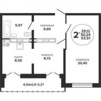 Продается 2-х комн. новостройка, 53.51 кв.м., 12/24 эт