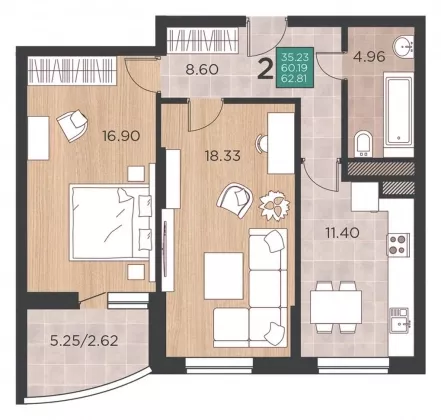 Продается 2-х комн. новостройка, 63.75 кв.м., 3/17 эт
