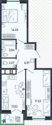Продается 2-х комн. новостройка, 62.26 кв.м., 19/21 эт