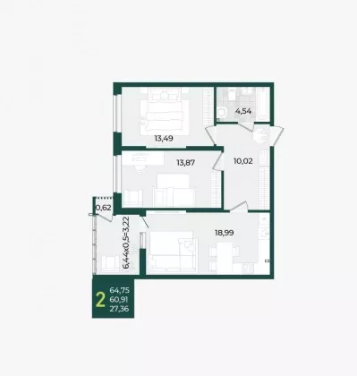 Продается 2-х комн. новостройка, 64.75 кв.м., 19/21 эт