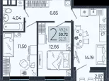 Продается 2-х комн. новостройка, 52.21 кв.м., 20/21 эт