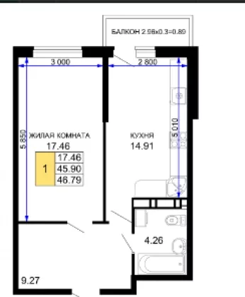 Продается 2-х комн. новостройка, 46 кв.м., 8/18 эт
