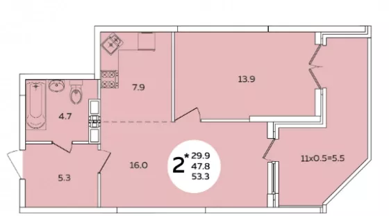 Продается 2-х комн. новостройка, 53 кв.м., 14/24 эт