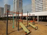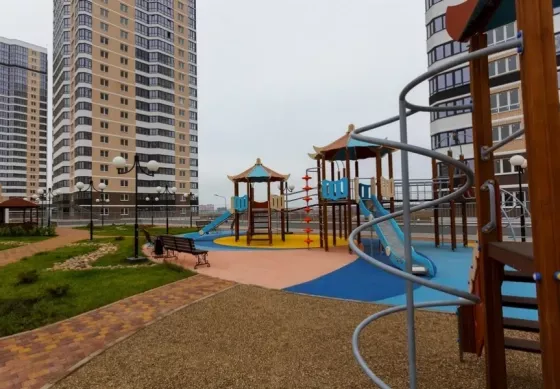 Во дворе 3 детских площадки,скейтпарк,зона отдыха с лавочками,ландшафтное озеленение,зона барбекю,камеры видеонаблюдения.