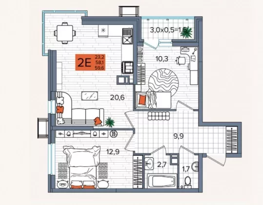 Продается 3-х комн. новостройка, 59.6 кв.м., 15/16 эт