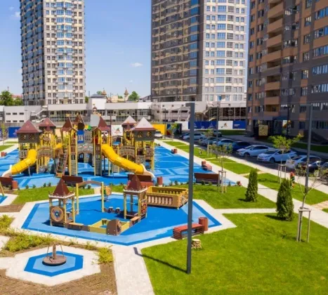 Удобное расположение микрорайона позволяет выехать за город минуя пробки,в 10 минутах езды ТРЦ Оз Молл, Парк отдыха.