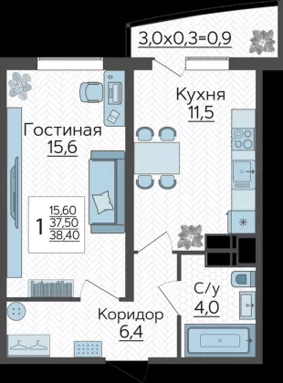 | Площадь, кв.м. | 38.2 |