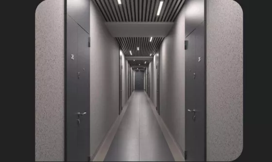В новом жилом два 16-этажных дома, в каждом из которых предусмотрено три подъезда с дизайнерскими входами и современными лифтами. Литеры располагаются друг напротив друга, между подъездами будет не больше 80 метров.