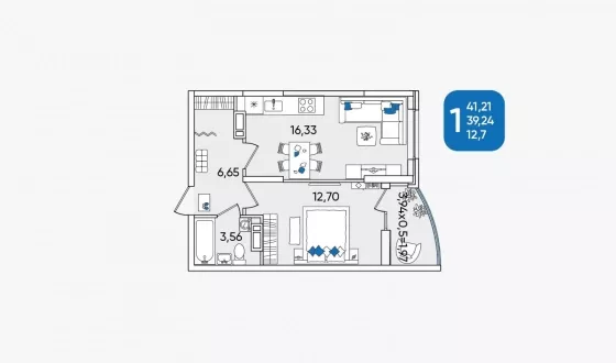 Продается однокомнатная новостройка, 41.21 кв.м., 3/24 эт