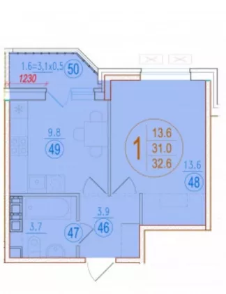Продается однокомнатная новостройка, 32.6 кв.м., 5/9 эт