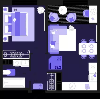 Продается однокомнатная новостройка, 39.2 кв.м., 17/18 эт