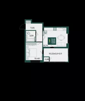 | Площадь, кв.м. | 42.83 |