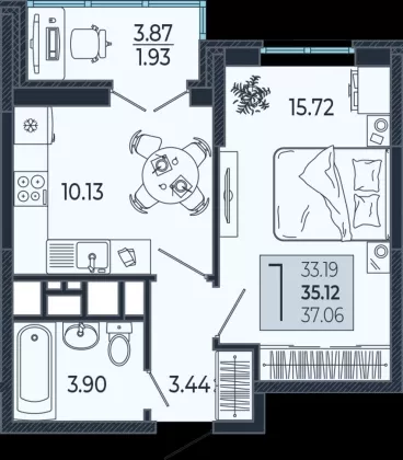 Продается однокомнатная новостройка, 37.6 кв.м., 21/21 эт
