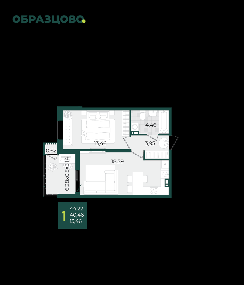 | Площадь, кв.м. | 44.22 |