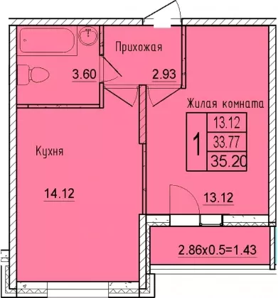 Продается однокомнатная новостройка, 35.2 кв.м., 19/19 эт