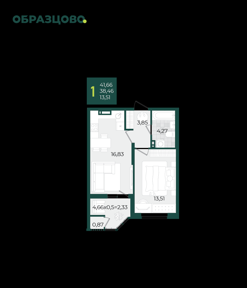 Продается однокомнатная новостройка, 41.66 кв.м., 8/21 эт