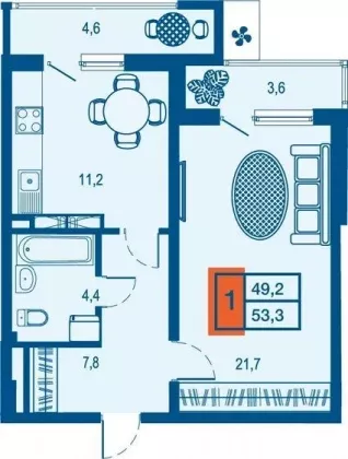 Продается однокомнатная новостройка, 53.3 кв.м., 19/23 эт