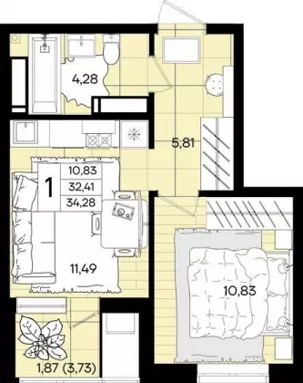 Продается однокомнатная новостройка, 35.28 кв.м., 12/18 эт
