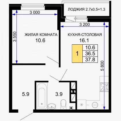 Продается однокомнатная новостройка, 37.8 кв.м., 11/16 эт