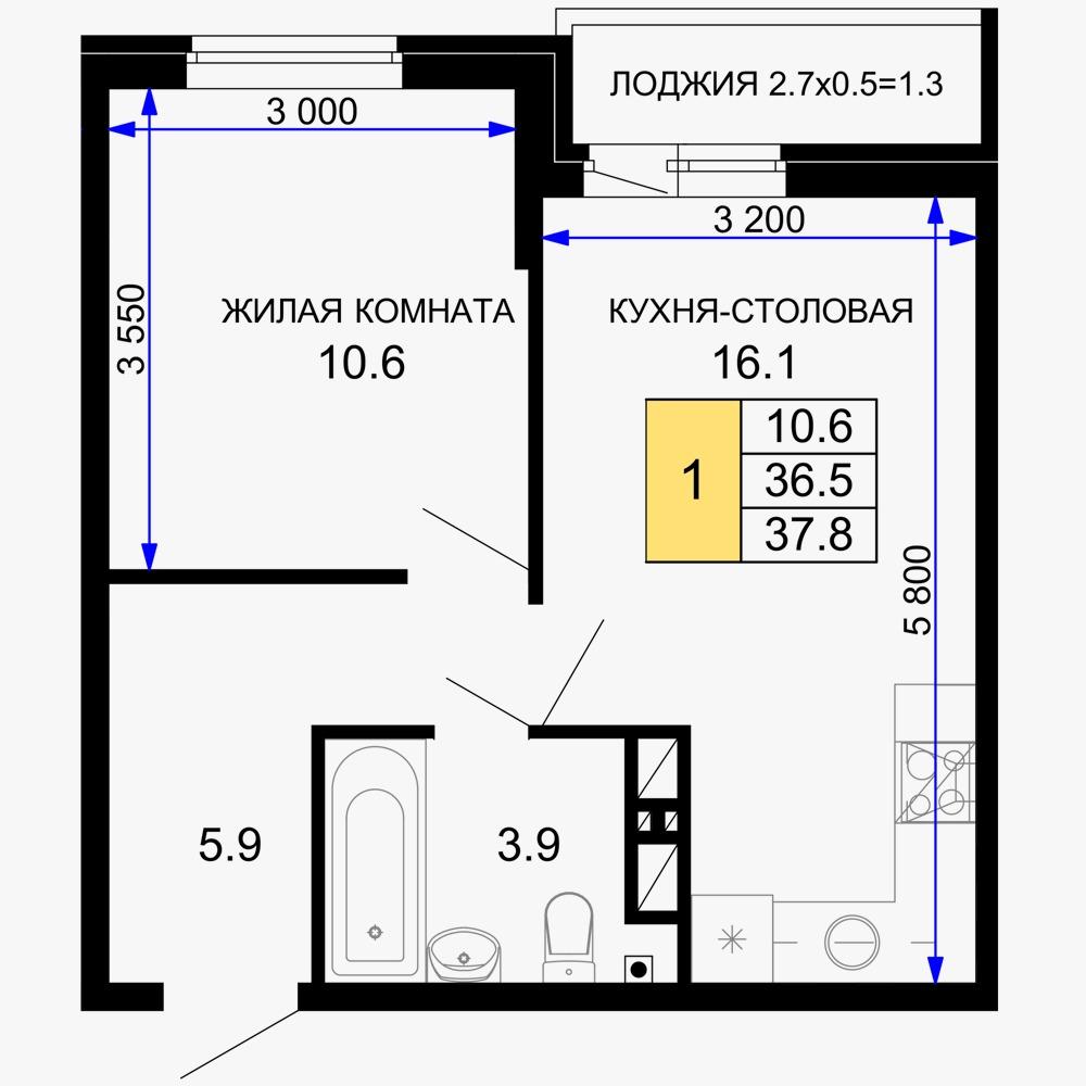 Продается однокомнатная новостройка, 37.8 кв.м., 15/16 эт
