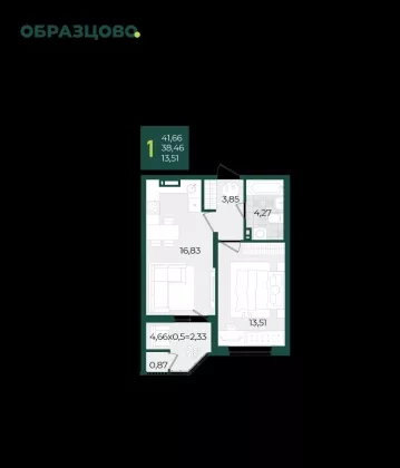Продается однокомнатная новостройка, 41.66 кв.м., 4/21 эт
