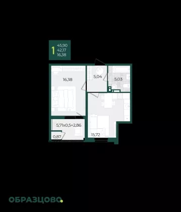 Продается однокомнатная новостройка, 45.9 кв.м., 11/21 эт