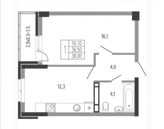 Продается однокомнатная новостройка, 38 кв.м., 14/15 эт