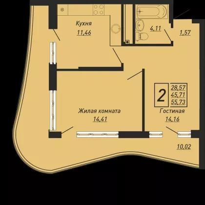 Продается 2-х комн. новостройка, 55.73 кв.м., 8/12 эт