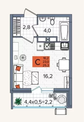 Продается Студия новостройка, 25.2 кв.м., 4/16 эт