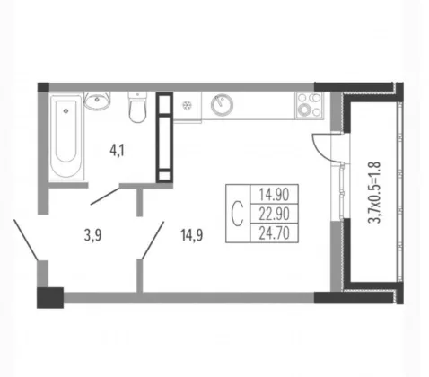 | Площадь, кв.м. | 24.7 |