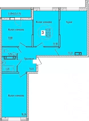 Продается 3-х комн. новостройка, 74.27 кв.м., 4/19 эт