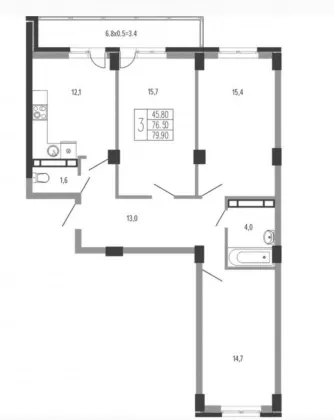 Продается 3-х комн. новостройка, 79.9 кв.м., 15/15 эт