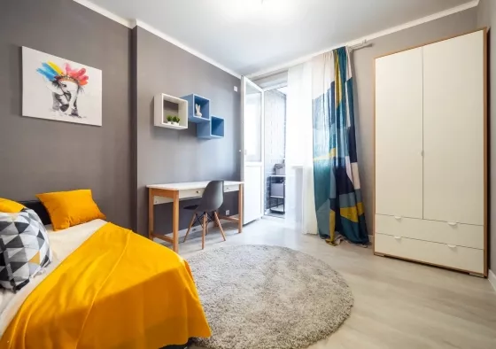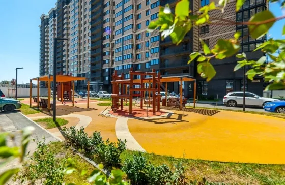 Современный благоустроенный двор. Витражное остекление, крепления под сплит-системы. Закрытый двор с лаунж-зонами и амфитеатром. Свои детский сад и школа прямо во дворе. Подземный паркинг.