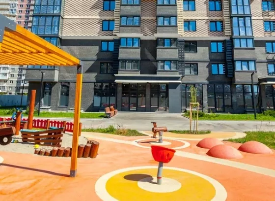 Современный благоустроенный двор. Витражное остекление, крепления под сплит-системы. Закрытый двор с лаунж-зонами и амфитеатром. Свои детский сад и школа прямо во дворе. Подземный паркинг.