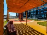 Современный благоустроенный двор. Витражное остекление, крепления под сплит-системы. Закрытый двор с лаунж-зонами и амфитеатром. Свои детский сад и школа прямо во дворе. Подземный паркинг.